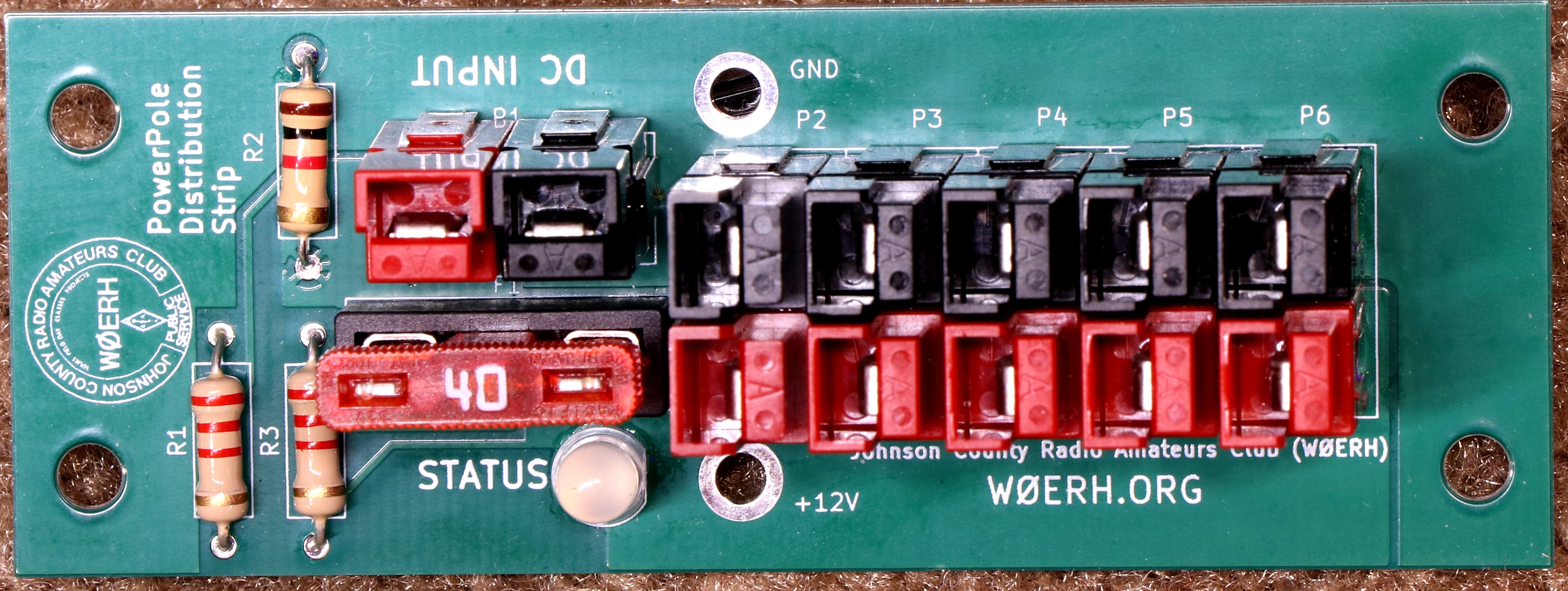 PowerPole input. The board provides a status LED indicating both "power